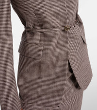 This Gucci blazer infuses every look with sophistication and elegance. Crafted in Italy from pure wool, the design features an all-over gingham pattern, detachable belt, and signature gold-toned Double G hardware. Product Details - Material: 100% wool - Care instructions: dry clean - Made in Italy - Designer color name: Pink/Brown - Item color: brown, pink - Details: 100% cow leather - Lining: 100% cupro - Contains non-textile parts of animal origin - Closure: buttoned front - Notched lapel - Pockets: internal pocket, flap pockets - Cuff: buttoned - Vent: single - Detachable belt - Item number: P01052690 Size & Fit - True to size - Shoulder pad inserts - Loose fit, comes with belt - Non-stretchy fabric - Falls below the hip - slit length 20cm-8" - The model seen in the picture is 178cm-5'10" and wearing a size IT 40