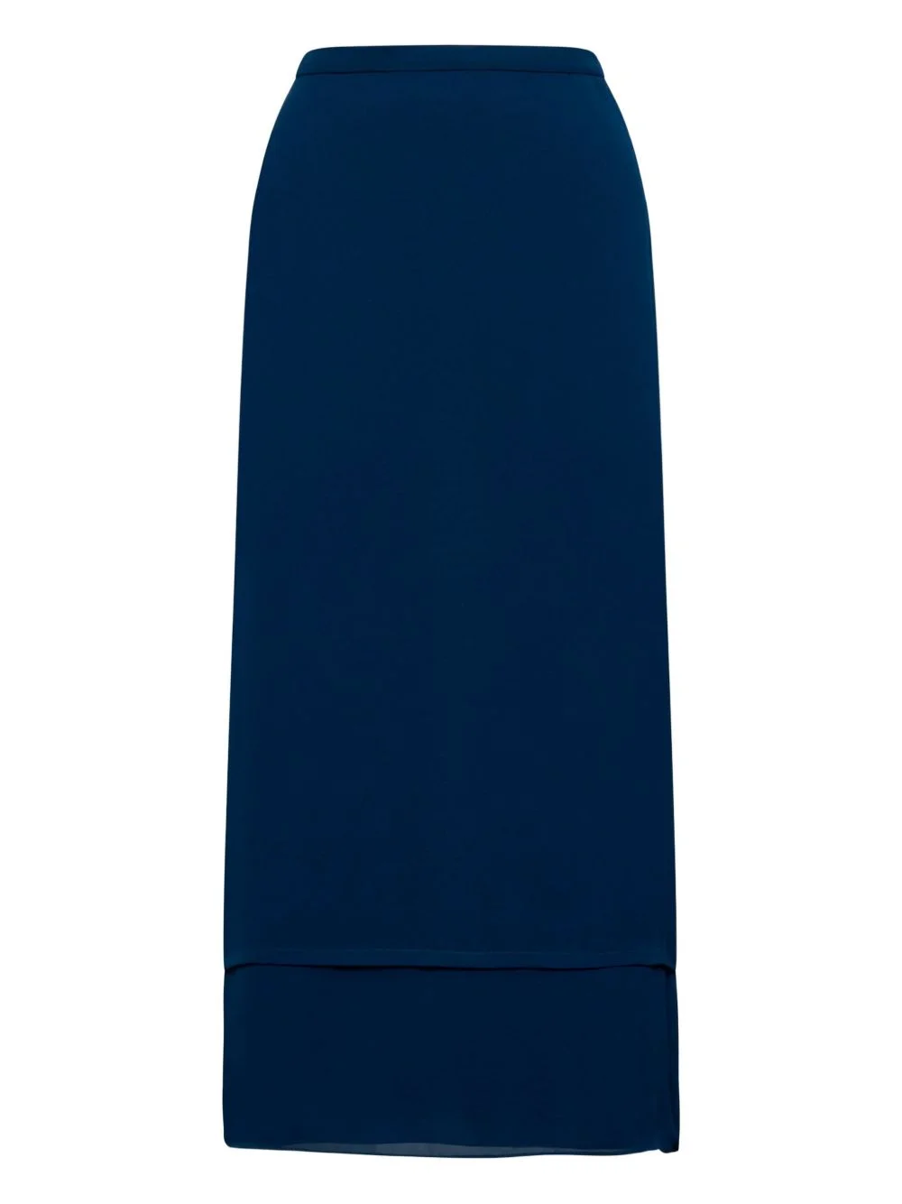 double-layer pleated skirt Highlights - Dark blue - Double layer - Pleated back - Zip fastening - Straight hem - Layered skirt Made in Italy Composition Polyester 100% Washing instructions Read Manufacturer Guidelines