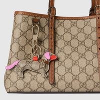 The Pre-Fall 2025 collection introduces accessories that speak to the House's signature themes. This bag charm explores a dog-shaped motif in GG Monogram coated fabric, completed with a Round Interlocking G detail. - Beige and dark brown GG Monogram coated fabric - Multicolored leather trim - Gold-toned hardware - Dog shape - Round Interlocking G detail - Hook closure and split ring - 4.3"W x 4"H x 0.4"D - Made in Italy - The bag shown is sold separately and is not included with the charm.