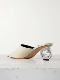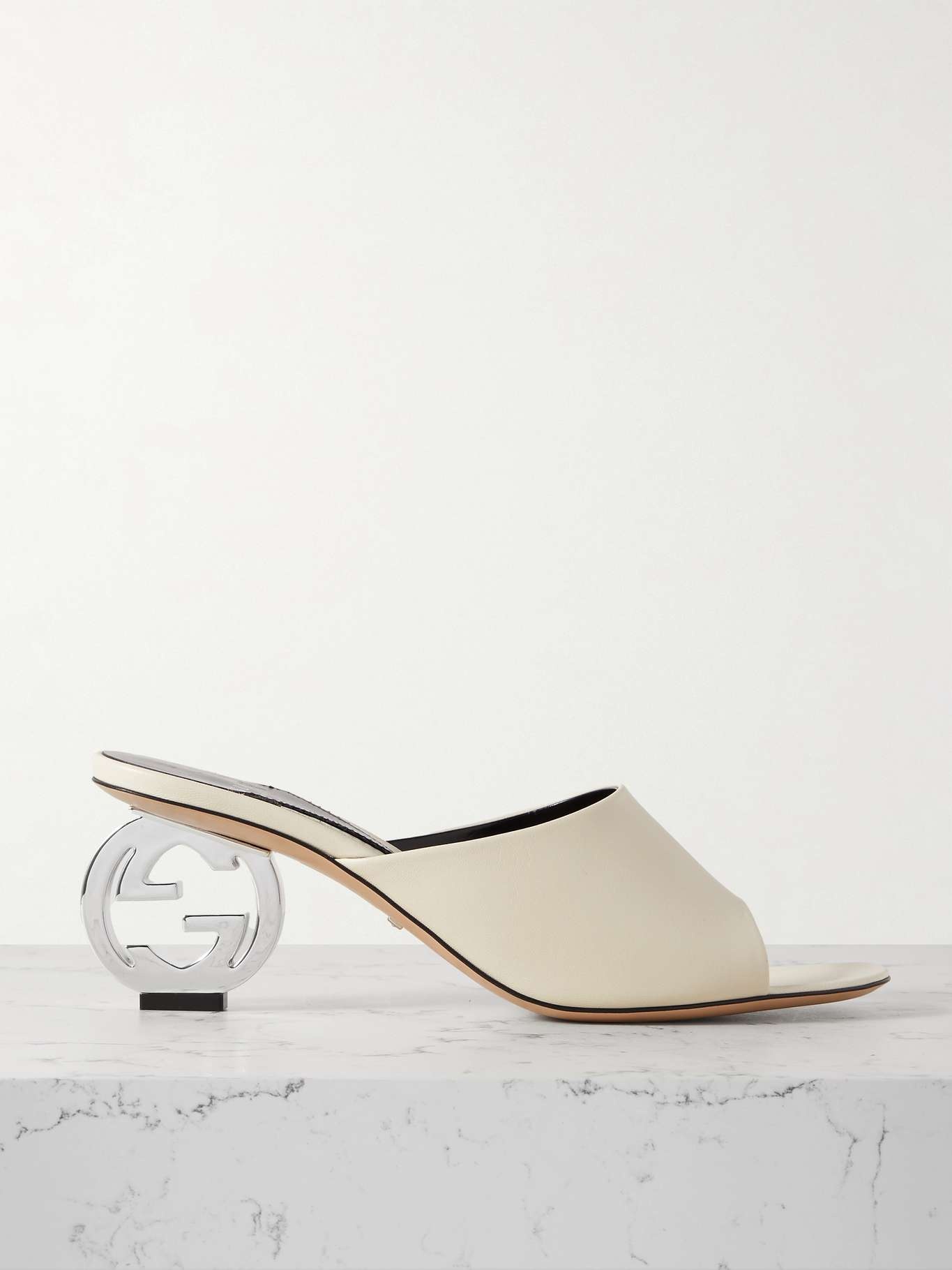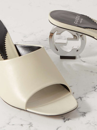 EDITORS'NOTES Gucci’s mules are set on a blown-up (and very supportive) version of the label's interlocking 'GG' plaque - show off the unique detail with midi or cropped hems. They've been made in Italy from supple leather and are designed with chic square toes. SIZE & FIT - Fits true to size, take your normal size - Italian sizing DETAILS & CARE - Heel measures approximately 65mm/ 2.5 inches - White leather (Goat) - Slip on