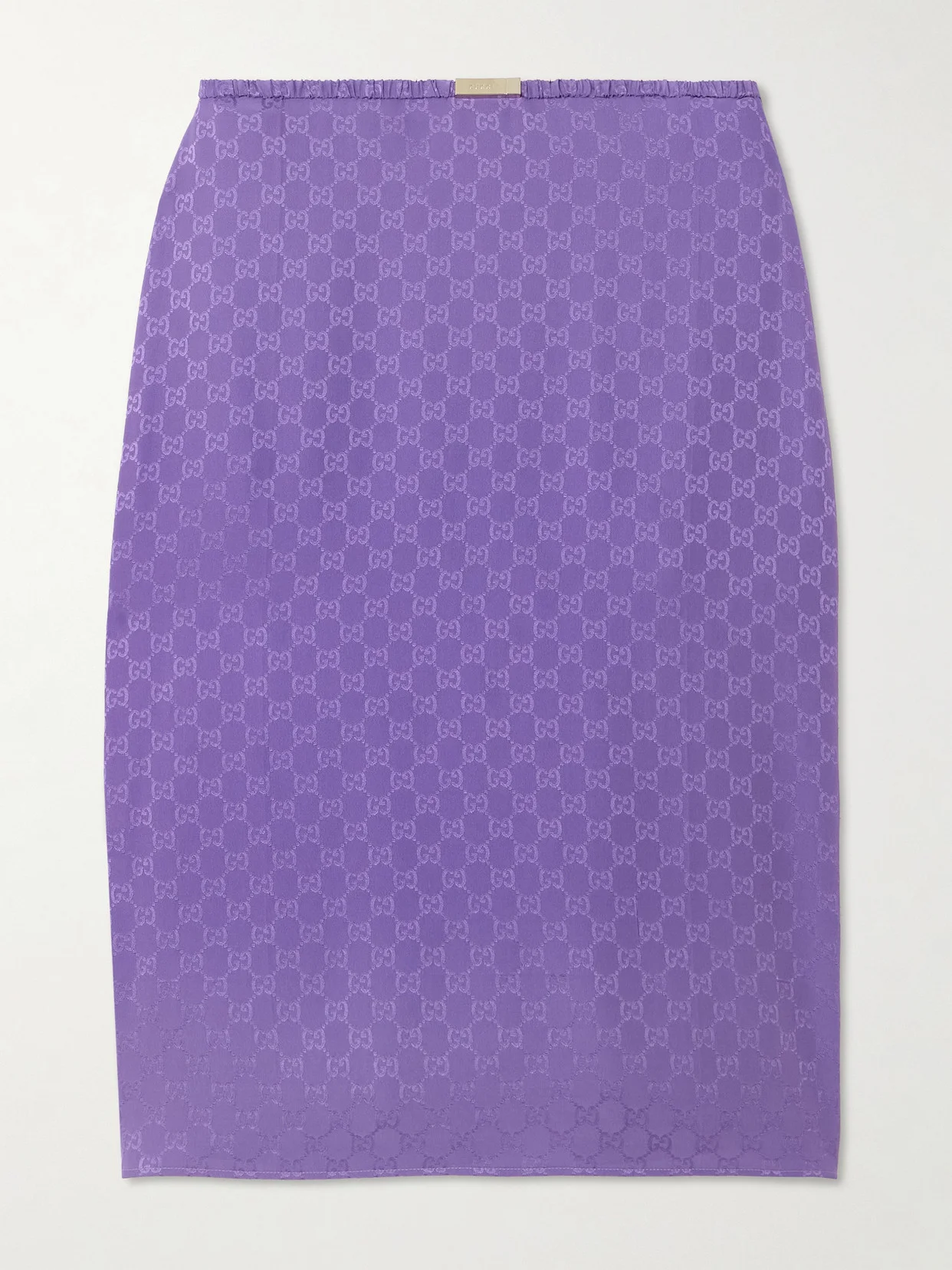 Gucci updates the classic slip skirt with its ‘GG' monogram, infusing it with signature boldness and distinctive house codes. Made from silk-jacquard, it has a figure-skimming fit and slim, elasticated waistband featuring a gold-tone logo plaque.