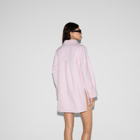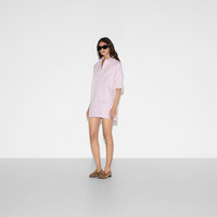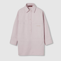 Classics such as elegant shirts and tailored jackets throughout the Cruise 2025 collection stand out with subtle details that elevate everyday looks. This lilac cotton canvas delave shirt features a Gucci embroidery on the front and a detachable point collar. - Lilac cotton canvas delave - Gucci embroidery - Detachable point collar - Long sleeves - Two front patch pockets - Snap button closure - Oversize fit - Length: 33.2"; Shoulder: 25.1"; Chest: 45.2"; Sleeves length: 32.2"; based on a size 42 IT - Made in Italy - The product shown in this image is a size 42 (IT)