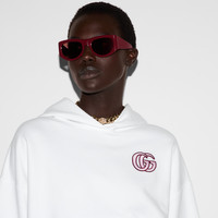 Gucci's House codes continue to evolve for the new season across relaxed jersey pieces. This regular fit hooded sweatshirt is presented in a cotton jersey and defined by a GG embroidery. - White cotton jersey - GG embroidery - Fixed hood - Dropped shoulder - Kangaroo pocket - Rib trim - Regular fit - Length: 20.7"; Shoulder: 23.6"; Half chest: 23.6"; Sleeves length: 33.9" based on a size S - Made in Italy - The product shown in this image is a size small