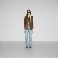 Classics such as elegant shirts and tailored jackets throughout the Cruise 2025 collection stand out with subtle details that elevate everyday looks. Crafted from a Houndstooth wool, this single-breasted jacket is enriched with a Gucci embroidery and a detachable belt with Double G buckle. - Beige and brown Houndstooth wool - Gucci embroidery - Lined - Single-breasted - Full canvas construction - Open collar - Two front pockets - Detachable and adjustable leather belt with silver-toned Double G buckle - Rear vent - Button closure - Length: 27.5"; Shoulder:15.7"; Chest:37.4"; Sleeves length: 32.2"; based on a size 40 IT - Made in Italy - The product shown in this image is a size 40 (IT)