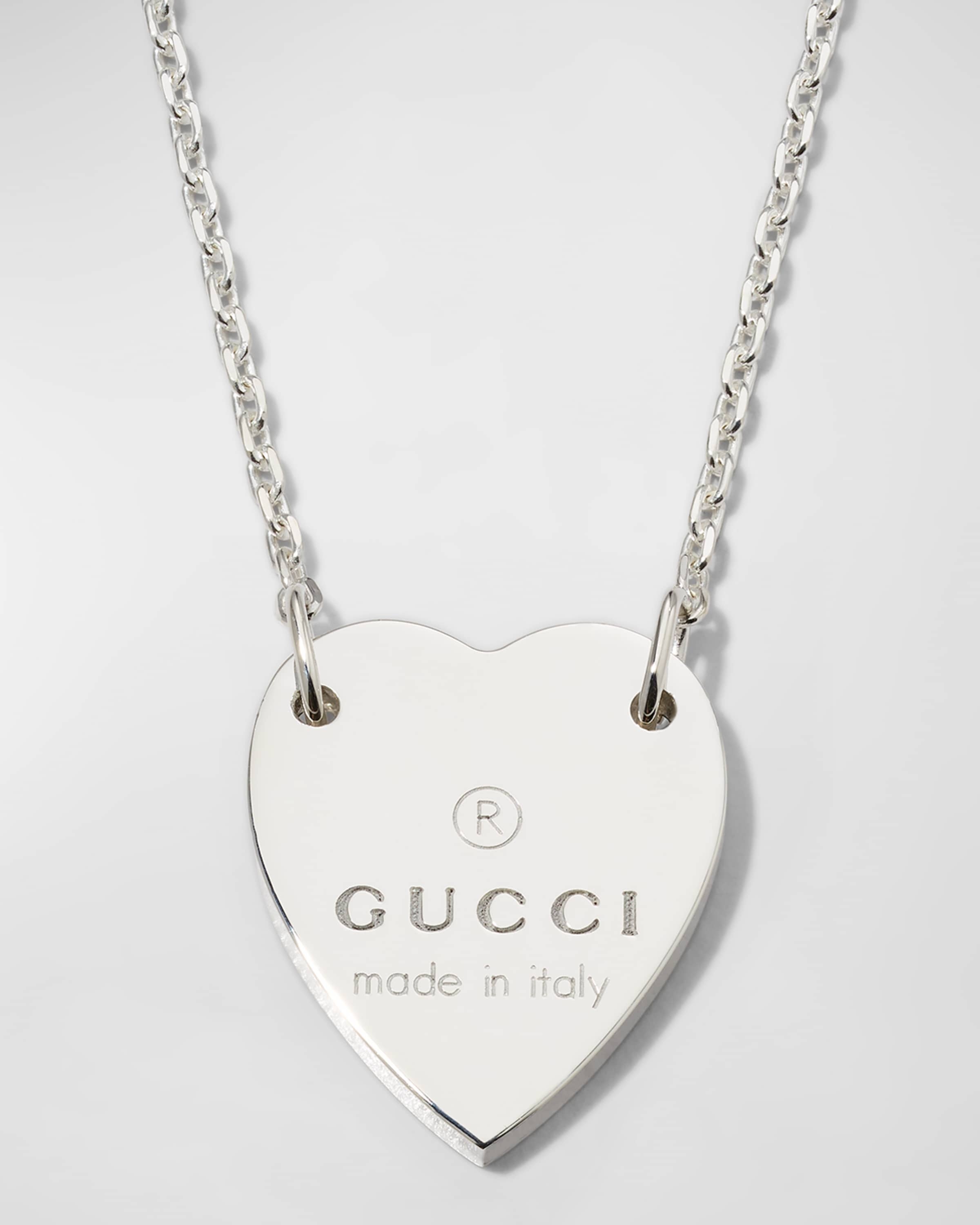 - Gucci necklace with engraved heart. - Polished sterling silver hardware. - Adjustable; lobster clasp. - All gemstone carat weights (ct. t.w.) are approximate; variance may be 0.05 carat. - Keep jewelry away from water and chemicals; remove during physical activities; clean and polish it with a soft cloth; store separately in a soft pouch. - Approx. 18.9"L; 0.7"L drop. - Made in Italy. Online Inquiries: NMS21_Y5FBT Store Inquiries: #3749411