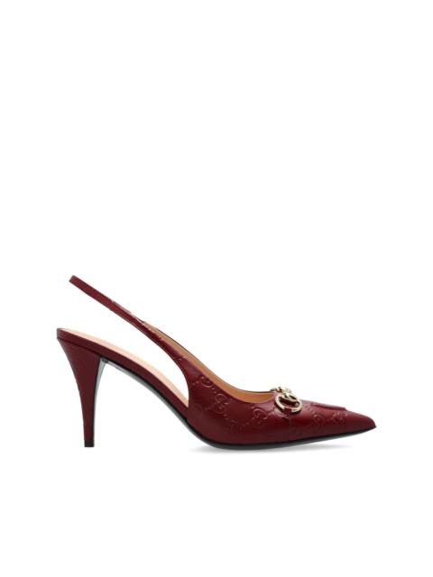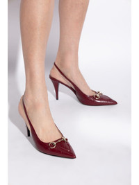 85mm Horsebit pumps Highlights - Wine red - Pointed toe - Signature horsebit detail - Slingback strap - Kitten heel Made in Italy Composition Outer: Calf Leather 100% Calf Leather 100% Sole: Calf Leather 100% SIZE & FIT Measurement HEEL 3.34 in(8.5 cm)