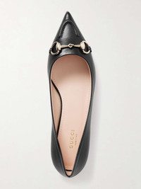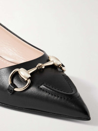EDITORS'NOTES Gucci's 'Erin' flats are topped with the house's signature horsebit hardware, which has become just as recognizable as any logo since its 1950s debut. They're made in Italy from black leather and have elegant, pointed toes. SIZE & FIT - Fits true to size, take your normal size - Italian sizing DETAILS & CARE - Slight heel - Black leather (Goat) - Slip on