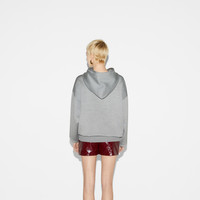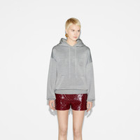 The piece is part of Sabato De Sarno's debut collection, offering a modern take on the House's well-known codes and symbols. The ribbed trims at the hems add a touch of elegance to the overall look, while the versatile hood and the embossed Gucci logo give it a contemporary touch. - Light grey melange extra fine viscose blend - Embossed Gucci logo - Rib trim - Fixed hood with drawstring - Pouch pocket - Length: 27.9", based on a size medium - Made in Italy - The model is 5'8" and is wearing size medium