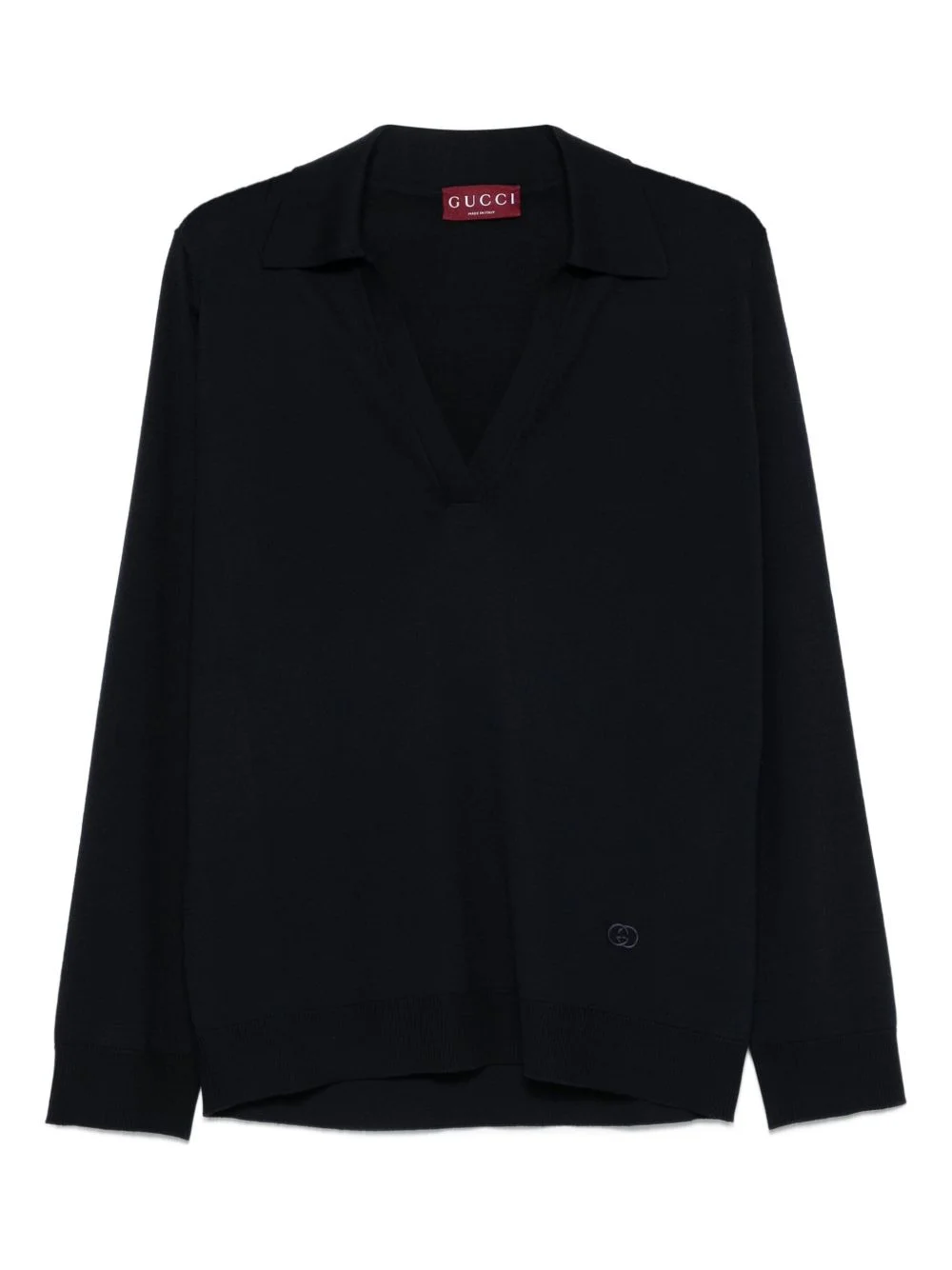 polo-neck logo top Highlights - Dark-blue - Polo neck - Long sleeves - Straight hem - Embroidered logo Made in Italy Composition Polyester 100%, Wool 100% SIZE & FIT Model measurements Height 5 ft 10 in(1.77 m) Bust/Chest 32.28 in(82 cm) Hips 35.03 in(89 cm) Waist 25.19 in(64 cm) Washing instructions Dry Clean Only