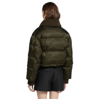 Green defines the color narrative for and speaks volume with textures, logo details and varying tonalities, as seen on the runway. This green puffer jacket is in a fine gabardine nylon with knitted trims and a Gucci metal logo detail. - Forest green fine gabardine nylon - Gucci metal detail - Lined - Knitted collar and cuffs - Two side pockets - Elastic drawstring hem - Padded - Zip closure - Made in Italy