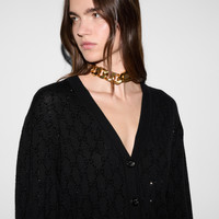 Versatility is key to the Pre-Fall 2023 collection, transitioning from weekdays to weekends with ease. This soft cardigan is presented in a striking black fine wool and enriched with a GG crystal embroidery. The dropped shoulder creates a relaxed silhouette, making for a playful piece that can be styled in endless ways. - Black fine wool with GG crystal embroidery - V-neck - Dropped shoulder - Long sleeves - Two front pockets - Rib trim - Sleeve Length: 23,8" - Length: 25,9" based on a size M - Made in Italy - The model is 5'7" and is wearing size small - Hem Width: 16,1"