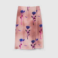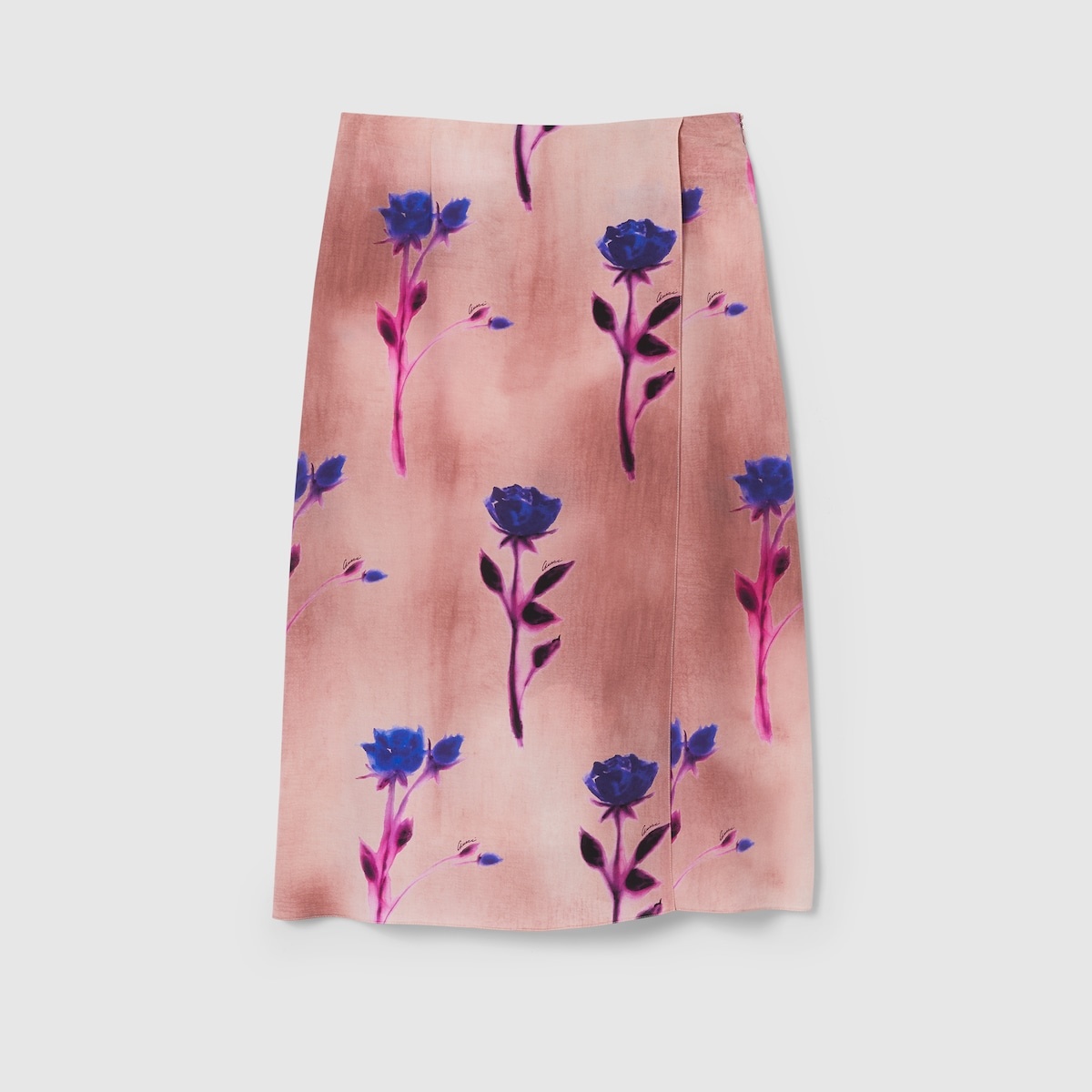 Garden-inspired palette, floral prints, and sophisticated lightweight materials are a prelude to the warmer weather. This A-line skirt is presented in a soft crêpe de chine and brought to life with a defined floral print. - Floral print pink crêpe de chine - Unlined - Wrap front - Concealed zip closure - Length: 29.5", based on a size 40 (IT) - Made in Italy - The product shown in the image is a size 40 (IT)