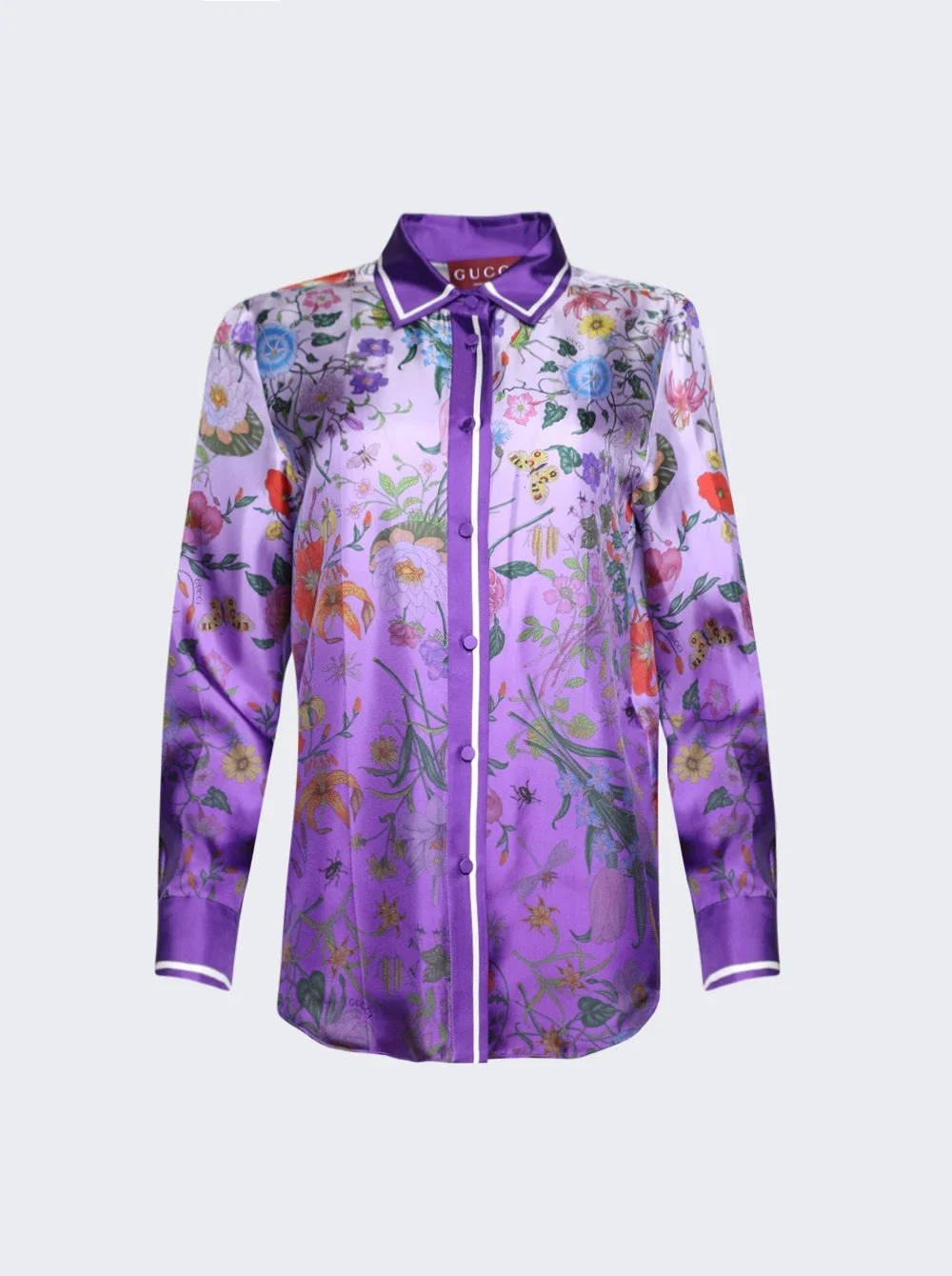 Details - Regular fit - Point collar - Button closure - Allover gradient Gucci Flora print - Unlined - Care according to label - Material: 100% Silk Vendor Color Code: Brand Style: 835607 ZATGZ Designer/Brand: GUCCI