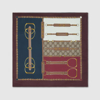 Emblematic codes of the House and refined patterns are reinterpreted in contemporary ways for the Pre-Fall collection. A Gucci heritage print defines this sophisticated scarf. - Brown and red Gucci heritage print silk - 35.4"W x 35.4"L - 100% silk (main fabric)