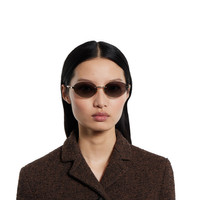 In the Fall Winter 2025 collection, the House celebrates its longstanding equestrian heritage. These frameless oval sunglasses reveal a through-Horsebit detail and gradient grey lenses. - Frameless structure with shiny gold-toned metal - Shiny gold-toned metal temples with through-Horsebit detail and black acetate end tips - Gradient grey lens - 100% UVA/UVB protection - GG2051S - Temple length: 5.7"; Lens height: 1.5"; Nose bridge length: 0.6" - Frame height: 1.6"; Frame width: 5.5"; Hinge to hinge: 5.3" - Made in Japan - The eyewear case in the House’s signature Rosso Ancora red hue is complete with a magnetic closure and white interior