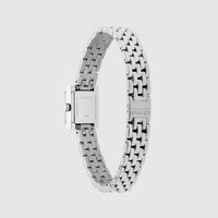 Defined by an elegant square shaped case, the G-Frame collection blends heritage details with a contemporary aesthetic. Crafted from a stainless steel case, the accessory is further enriched with a pink dial with diamonds and a stainless steel bracelet. - 14x18mm stainless steel case - Pink dial with dimonds - Sapphire glass with antireflective coating - Stainless steel bracelet - The warranty certificates for Gucci watches purchased after March 1st 2022 are exclusively available online. - Download your certificate at - by using the serial number engraved on the back of your watch. - Quartz movement - 3 ATM (98 feet/30 meters) - YA128539 - Wrist size from 5.5" to 6.9" - Swiss Made