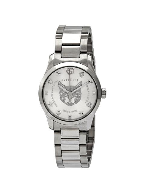 Gold PVD stainless steel case with a taupe leather strap. Fixed gold PVD bezel. Champagne (bee motif) dial with gold-tone hands and index hour markers. Dial Type: Analog. Quartz movement. Scratch resistant sapphire crystal. Pull / push crown. Solid case back. Round case shape. Case size: 32 mm. Band width: 15 mm. Tang clasp. Water resistant at 50 meters / 165 feet. Functions: hour, minute, second. G-timeless Series. Dress watch style. Gucci G-Timeless Quartz Champagne Dial Ladies Watch YA1265022. INFORMATION Brand: Gucci Series: G-Timeless Collection Name: G-Timeless Gender: Womens Model: YA1265022 Movement: Quartz CASE Case Size: 32 mm Case Material: Stainless Steel Case Shape: Round Case Back: Solid BAND Band Material: Leather Band Type: Strap Band Color: Taupe Band Width: 15 mm Clasp: Tang DIAL Dial Color: Champagne (Bee Motif) Type: Analog Crystal: Scratch Resistant Sapphire Hands: Gold-tone Dial Markers: Index Bezel: Fixed Bezel Color: Gold PVD Bezel Material: Stainless Steel Crown: Pull / Push FEATURES Water Resistance: 50 meters / 165 feet Functions: Hour, Minute, Second Watch Features: Stainless Steel, Leather, Gold, Analog ADDITIONAL INFO Watch Style: Dress Warranty: 2 Year Jomashop Warranty UPC Code: 731903479890 Jomashop Sku: GCYA1265022 Department: Watches Category: Watches