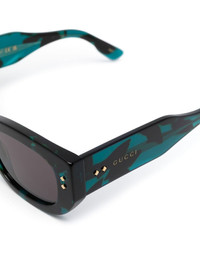 rectangle-frame sunglasses black/blue acetate rectangle frame tinted lenses gold-tone logo lettering sculpted arms curved tips These glasses come with a protective case. Made in Italy Composition Acetate 100% SIZE & FIT Measurement Arm Length 5.7 in(14.5 cm) Bridge Width 0.86 in(2.2 cm) Lens Diameter 2 in(5.1 cm) Total Width 5.59 in(14.2 cm)