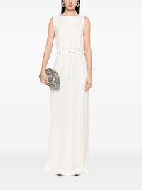 almond beige concealed side zip fastening detachable and adjustable waist belt draped panel detail scoop back - Color: NEUTRALS - Made in: Italy - Designer Style ID: 814053 Z8BYX 9200 Composition and care Outer Composition Silk: 32.0%, Lining Composition Silk: 25.0%, Outer Composition Calf Leather: 100.0%, Lining Composition Acetate: 75.0%, Outer Composition Viscose: 68.0%