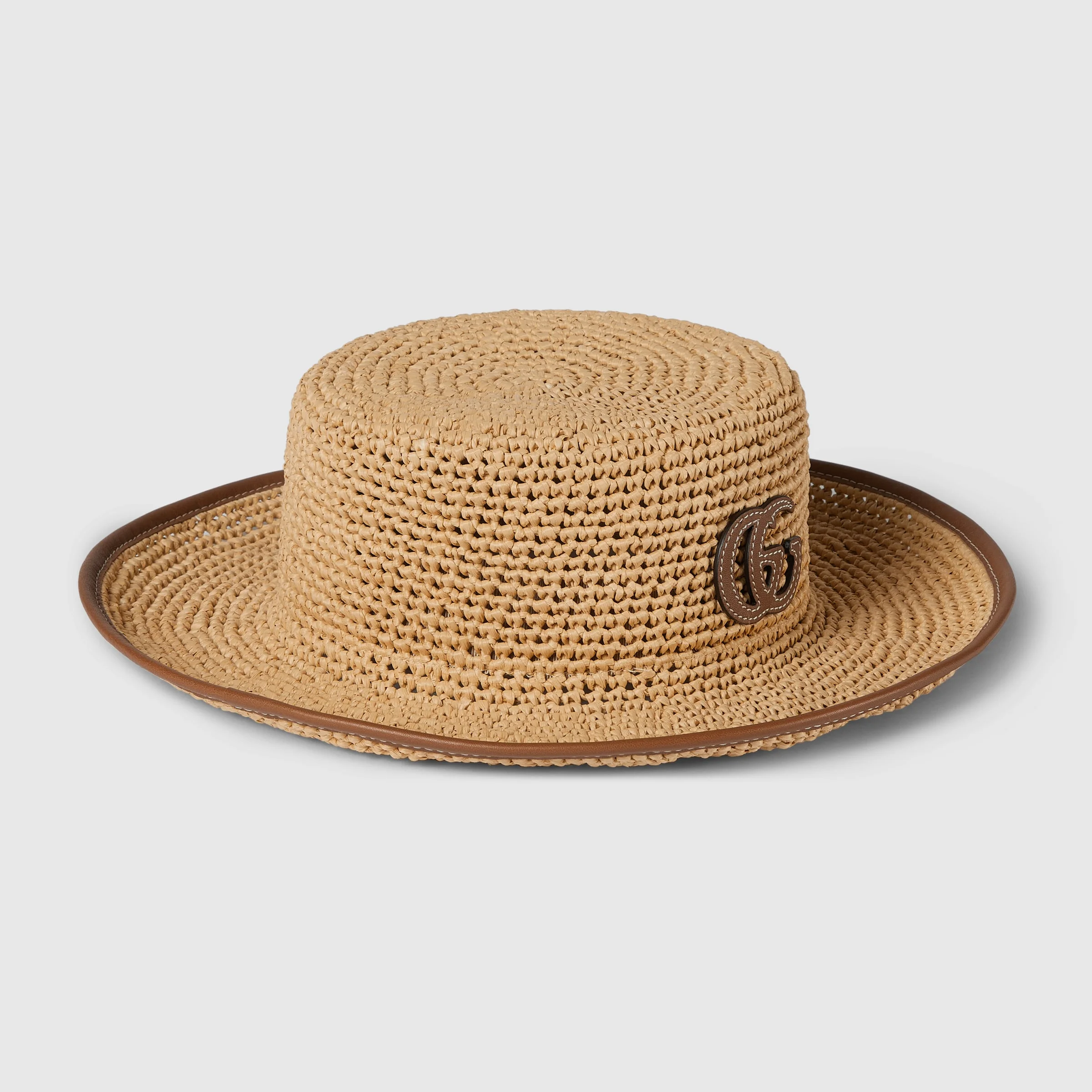 The Pre-Fall 2025 soft accessories' collection animate House codes through sophisticated trimmings, logo patches and subtle embroideries. This boater hat is presented in a natural straw and enriched with a Double G leather patch. - Natural straw - Brown leather trim - Unlined - Double G leather patch - Made in Italy