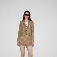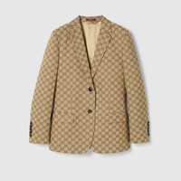 Inspired by the summer spirit and beach clubs on the Italian coast, this item is part of Gucci Lido. Emblematic codes of the House and refined patterns are reinterpreted in contemporary ways for the Pre-Fall collection. This tailored jacket is presented in camel and ebony Original GG canvas, making for a striking seasonal addition to your wardrobe. - Camel and ebony Original GG canvas - Half lined - Full canvas construction - Single breasted - Notch lapel - One breast pocket - Two flap pockets - Inside pocket - Button closure - Length: 27.1", based on a size 40 (IT) - Shoulders: 15.7"; Sleeve length: 31.5" - Made in Italy - The product shown in the image is a size 40 (IT)