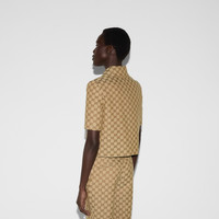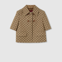The GG monogram reinterprets the House’s history of elegance and craftsmanship. Crafted from a GG canvas, this jacket features a Horsebit closure and a brown leather trim. - Camel and dark brown GG canvas - Brown leather trim - Lined - Point collar - Short sleeves - Two front pockets - Horsebit detail - Length: 18.1"; Shoulder:15.7"; Chest:37.5"; Sleeves length: 18.1"; based on a size 38 IT - Made in Italy - The product shown in this image is a size 38 (IT)