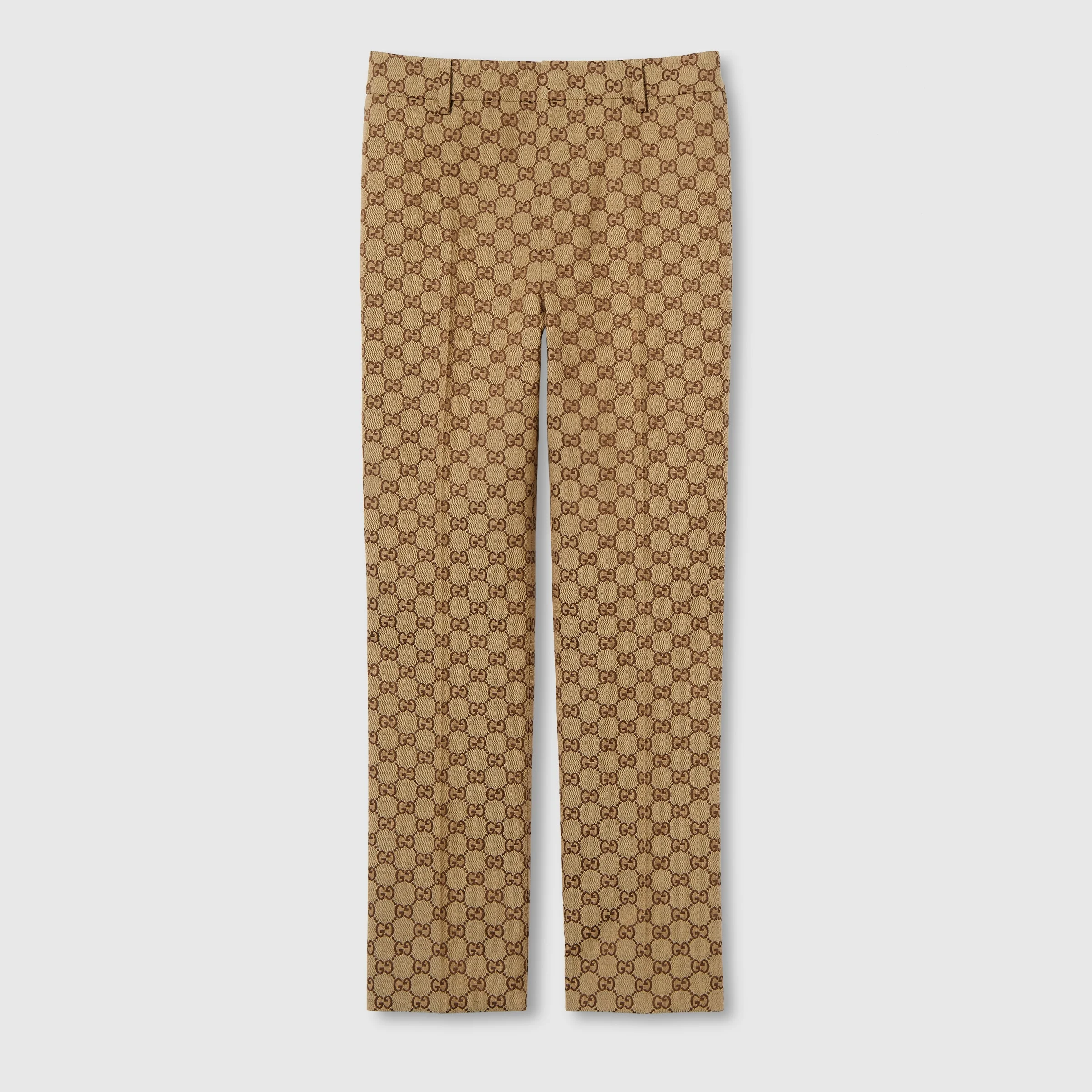 Emblematic codes of the House and refined patterns are reinterpreted in contemporary ways for the Pre-Fall collection. These straight-leg tailored pants are presented in camel and ebony Original GG canvas, making for a striking seasonal addition to your wardrobe. - Camel and ebony Original GG canvas - Unlined - Two side pockets - Two back pockets - Belt loops - Tab and hook closure with zip - Straight and cropped leg - Length: 37", based on a size 40 (IT) - Leg opening: 7.8", based on a size 40 (IT) - Made in Italy - The product shown in the image is a size 40 (IT)