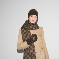 The initials of the Founder of the House, Guccio Gucci, alternate across a selection of soft accessories. These gloves are stated in a GG cashmere jacquard and completed with a rib knit trim. - Brown and beige GG cashmere jacquard - Rib knit trim - Made in Italy