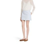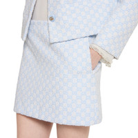 The Pre-Fall 2025 selections spotlight essential silhouettes with emblematic details from daywear to eveningwear. This mini skirt is presented in GG boucle cotton, paying homage to founder Guccio Gucci's instantly-recognizable monogram. - White and light blue GG cotton boucle - Lined - Side zip closure - Mini - Made in Italy