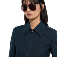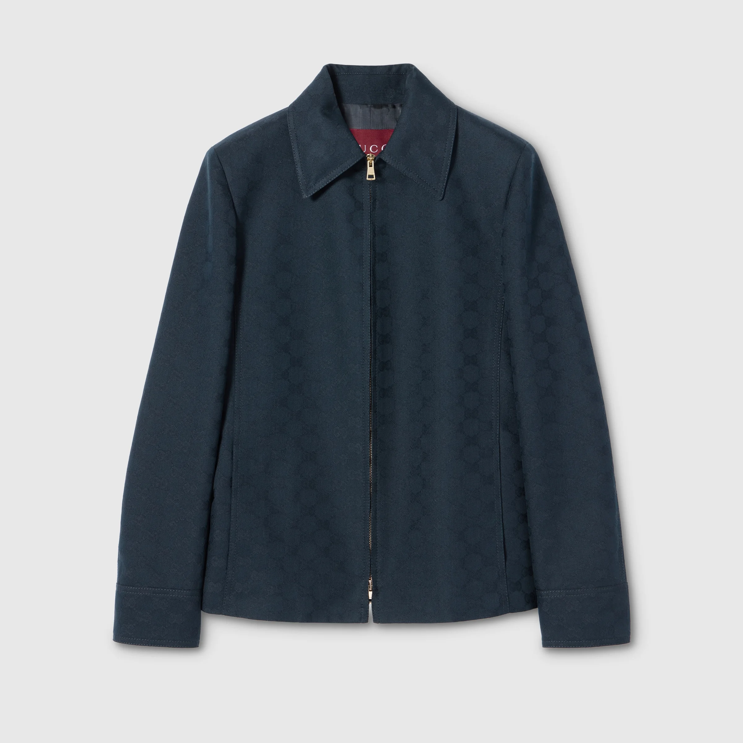 In the Cruise 2026 collection, the heritage-driven narrative is expressed with traditional GG fabrics. Crafted from GG cotton gabardine, this zip jacket is enriched with a detachable belt. - Blue GG cotton gabardine - Lined - Point collar - Long sleeves - Detachable belt - Front zip closure - Length: 23.6" based on a size 40 (IT) - Made in Italy - Fabric: 55% Polyester, 45% Cotton - Belt: 53% Acetate, 47% Viscose - Lining: 100% Viscose