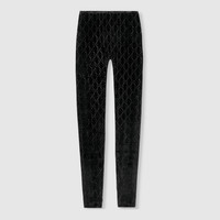 In the Fall Winter 2025 collection, stretch chenille leggings are reimagined with a luminous touch. The style is embellished with allover GG crystal embroidery, combining signature codes with a contemporary touch. - Black stretch chenille - Allover GG crystal embroidery - High-rise - Elasticated waistband - Length: 36"; based on size XS - Made in Italy
