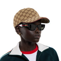 The House's silk accessories collection continues to reinterpret emblematic motifs, from the GG, Web, Flora, bamboo, Horsebit and equestrian inspirations, in sumptuous materials, intricate craftsmanship, and fresh hues. Crafted from a GG canvas, this baseball cap has been finished with a green and red Web trim. - Beige and dark brown GG canvas - Green and red Web trim - Lined - Web detail - Adjustable buckle closure - Main fabric: cotton 70%, polyester 30%; lining: cotton 100%; detail: polyester 100%; detail: polyamide 100%; detail: cotton 55%, viscose 45%;