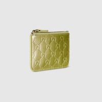 In the Fall Winter 2025 collection, the GG Emblem collection reinterprets signature motifs through creativity and innovative functions, and is envisioned to be cherished for years to come. Introduced in the latest line of accessories, this key pouch is features a zip closure with a leather puller, with a keychain hook inside. - Pale green patent GG leather - Gold-toned hardware - Zip closure - W5.1" x H3" x D0.2" - Weight: approximately 0.13lbs - Made in Italy