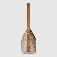 In the Fall Winter 2025 collection, the GG Emblem collection reinterprets the House’s history of elegance and craftsmanship. This shoulder bag is made from GG Monogram coated fabric. - Beige and dark brown new GG Monogram coated fabric - Brown leather trim - Light gold-toned hardware - Green and red Web cotton lining - The bag charm shown is sold separately and not included with the handbag. - Inside: zip pocket - Adjustable leather strap: 6.3" – 10.2" drop; 28.3" length - Zip closure - W11.8" x H7.5" x D4.3" - Weight: approximately 0.99lbs - Made in Italy - Fits iPhone Pro Max/Plus, Airpods, long wallet, and lipstick