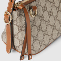 In the Fall Winter 2025 collection, defined by a compact silhouette and essential detailing, this GG Emblem small shoulder bag features a zip closure and a clean-lined structure. The interior includes a flat pocket for added organization, while the shoulder strap offers a comfortable, close-to-body fit. - Beige and dark brown new GG Monogram coated fabric - Brown leather trim - Light gold-toned hardware - Green and red Web cotton lining - The bag charm shown is sold separately and not included with the handbag. - Inside: leather flat pocket - Shoulder strap: 9.1" drop - Zip closure - W8.7" (10.6") x H4.1" x D3.5" - Weight: 7.8oz approximately - Made in Italy - Fits iPhone Pro Max/Plus, Airpods, small wallet, and lipstick