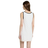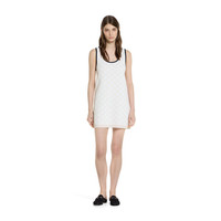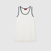 The Pre-Fall 2025 collection perfectly blends versatile textures and sophisticated detailing. GG jacquard weavings and intricate details evolve to reflect the changing seasons. The allover GG motif defines this dress, while a contrasting navy trim creates a refined finish. - White GG fine cotton jacquard - Navy trim - Scoop neck - Sleeveless - Made in Italy