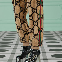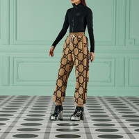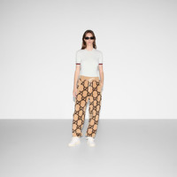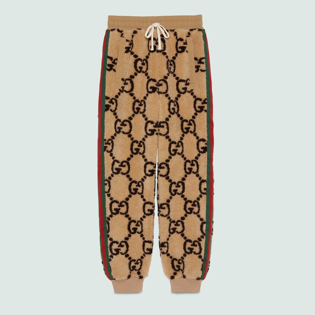 Classic elements still permeate the House's aesthetic, blending seamlessly with the contemporary for an updated yet never-out-of-style wardrobe. These jogging pants are crafted in GG jacquard and further connected to the House's history through the green and red Web - Camel and brown GG jacquard fabric - Green and red Web detail - Net lining - Elastic waistband with drawstring - Two side pockets - Rib trim - Made in Italy - The model is 5'7" and is wearing size small