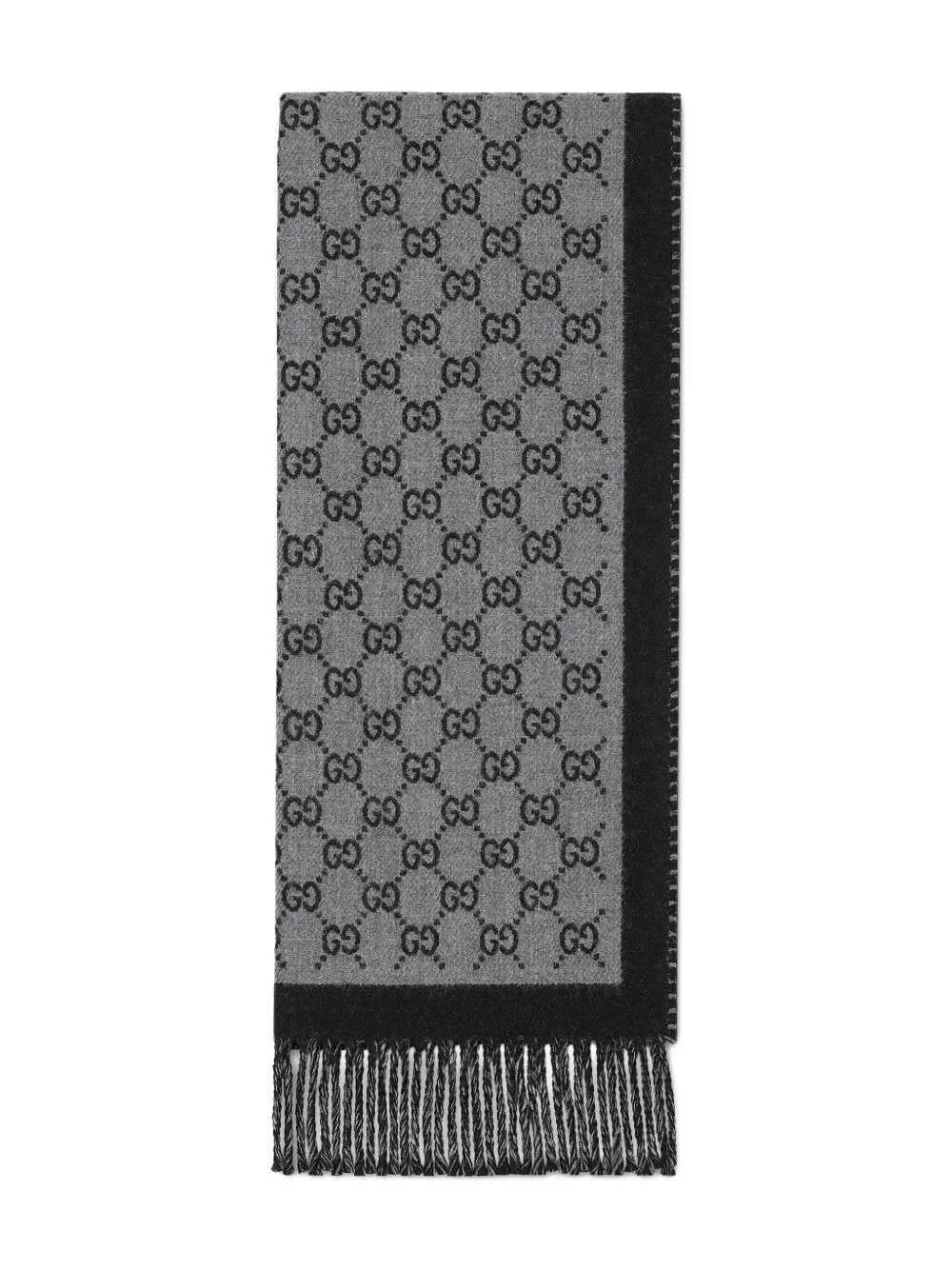GG jacquard wool scarf Highlights - Wool Made in Italy Composition Wool 100% SIZE & FIT Measurement LENGTH 77.55 in(197 cm) WIDTH 13.38 in(34 cm)