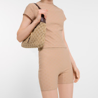 Introducing Spring Summer 2026. This style is part of the La Famiglia collection, which reinterprets the House’s codes through singular personalities and distinctive aesthetic attitudes. These shorts are presented in beige GG jersey jacquard. - Beige GG jersey jacquard - Length: 14.76", based on a size S - Made in Italy - Fabric: 87% Polyamide, 13% Elastane - Trimming: 92% Polyamide, 8% Elastane