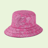 The GG logo evolves from the original Gucci rhombi design of the 1930s and continues to animate the latest selection of House accessories. This sparkling reversible bucket hat appears in bright pink GG lamé on one side and a romantic foliage lamé jacquard on the other. - Bright pink GG lamé on one side - Bright pink foliage lamé jacquard on the other side - Oval Interlocking G leather tag - Made in Italy