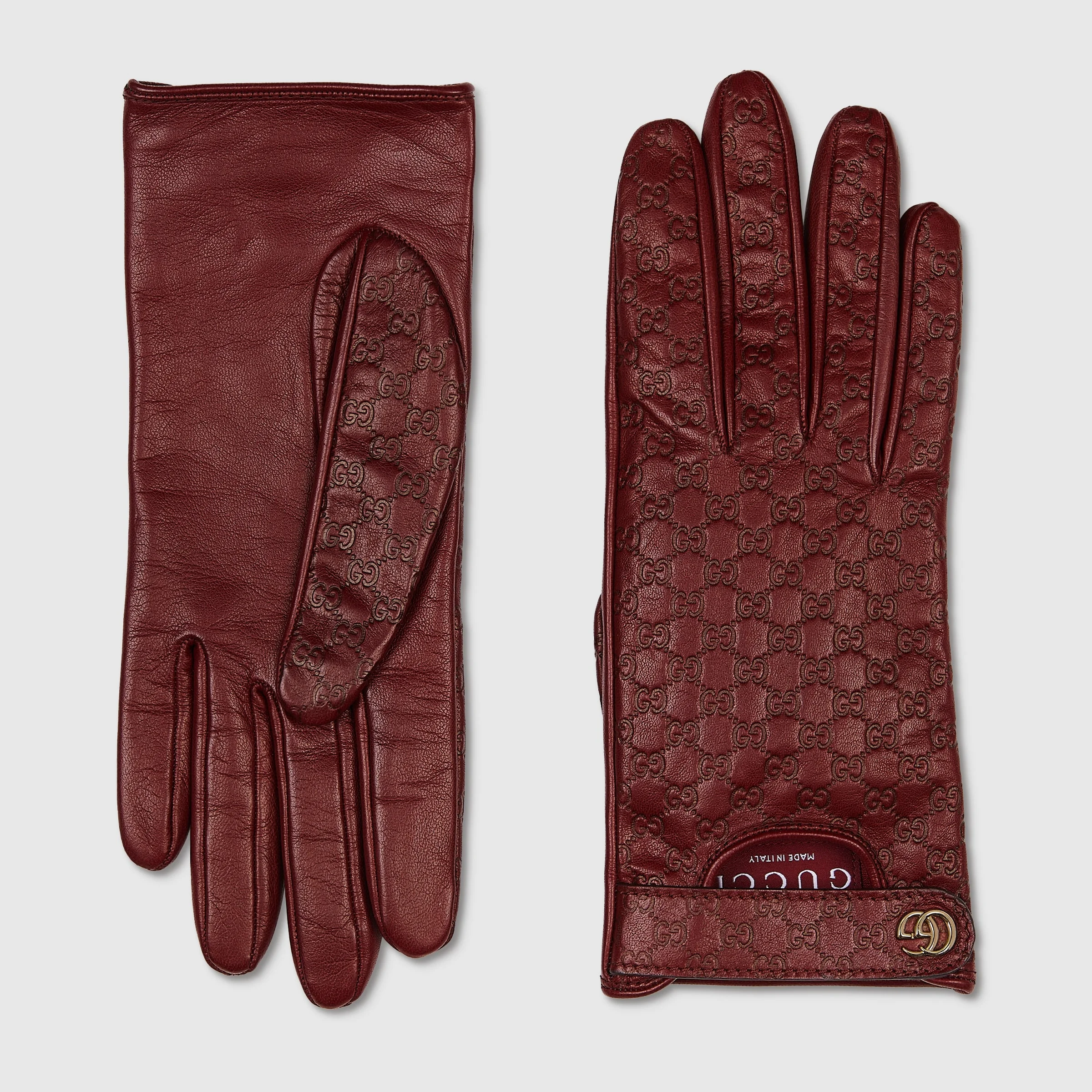 The Pre-Fall 2025 soft and silk accessories' collection animate House codes through sophisticated trimmings, logo patches and subtle embroideries. Crafted from a GG leather, these gloves feature a Double G detail and Gucci tag. - Bordeaux GG leather - Cut-out detail - Gucci tag - Double G snap button closure - Made in Italy