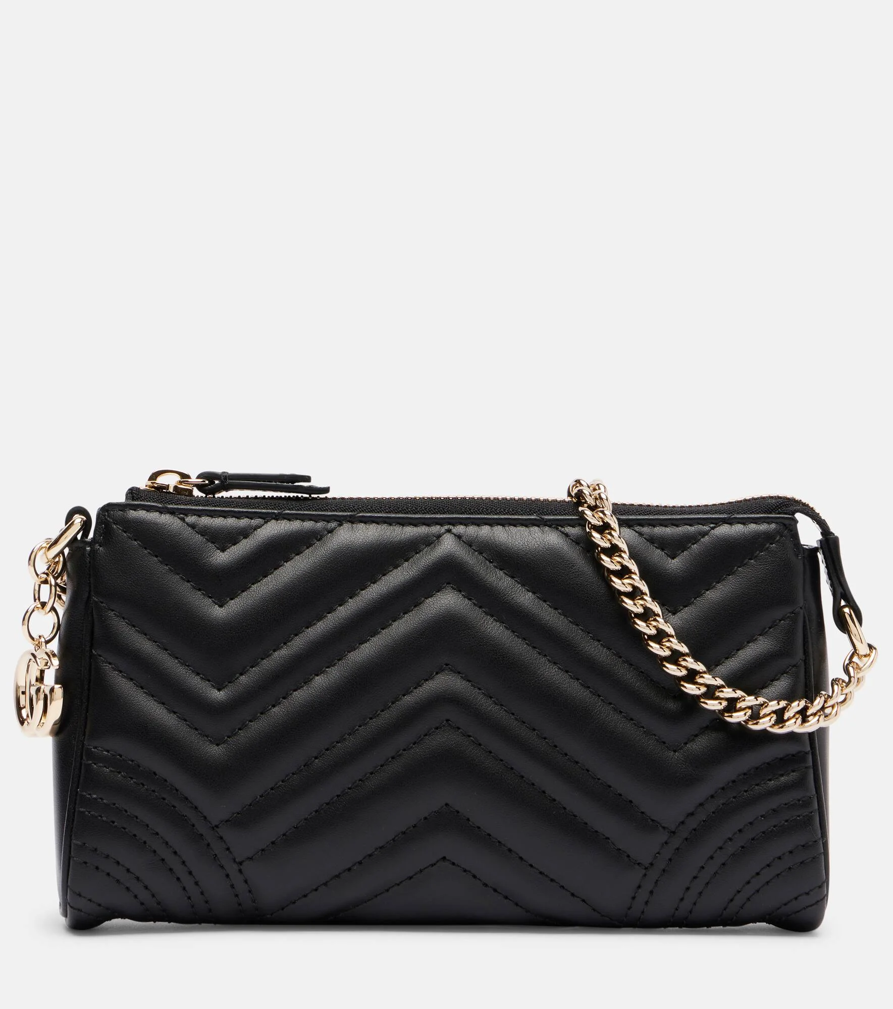 Gucci reimagines a house classic with the GG Marmont 2.0 bag, crafted from leather with an artful quilted finish. This Mini design showcases gold-toned accents, from the signature GG logo to the chain shoulder strap. Product Details - Material: leather - Lining: fabric - Made in Italy - Designer color name: Nero/Nero - Item color: black - Hardware color: gold - Chain shoulder strap - Closure: zipped top - Internal details: single compartment, card slot - Item number: P01095582 Size & Fit - Height 11cm-4.5" - Width 21cm-8.5" - Depth 3cm-1" - Chain length 56cm-22"