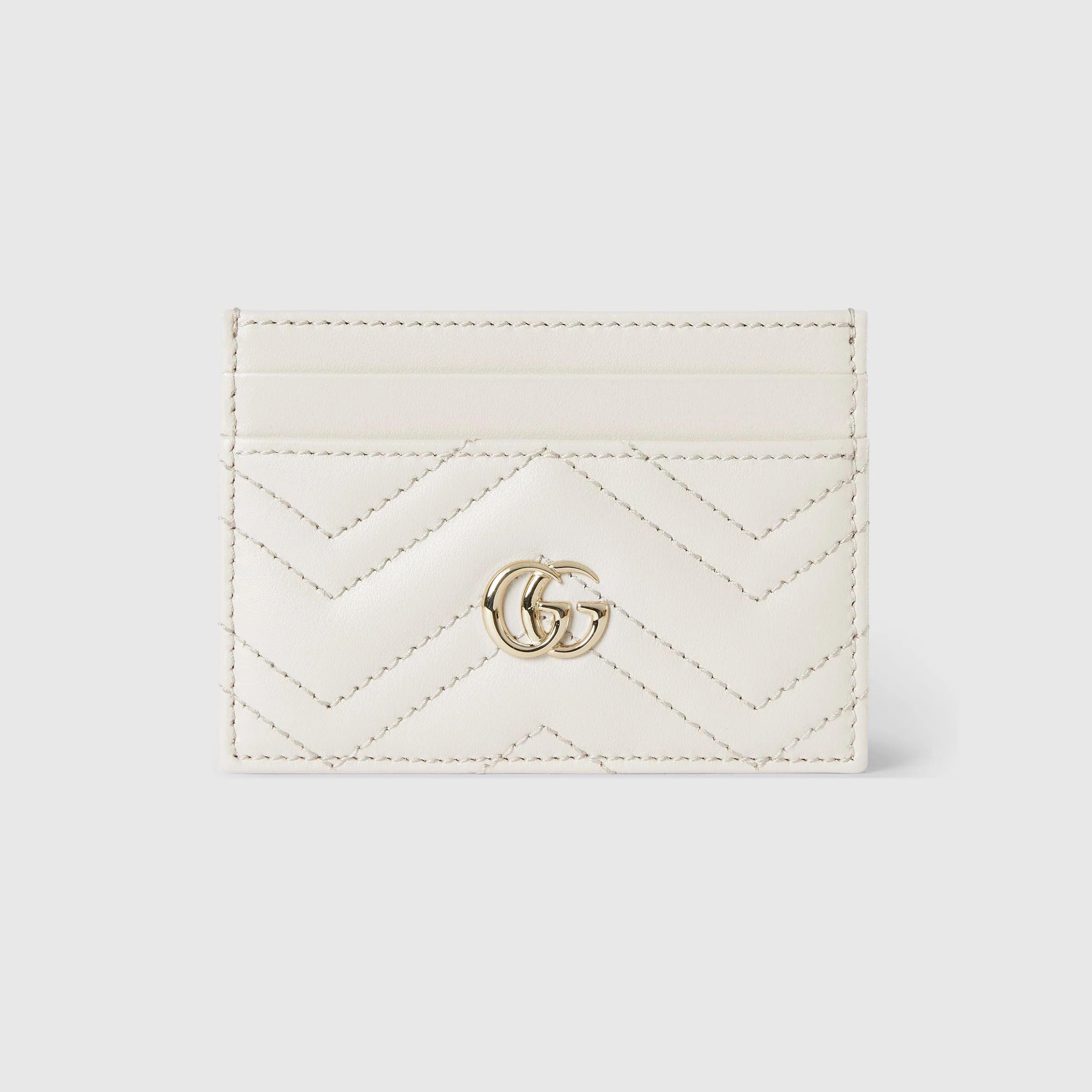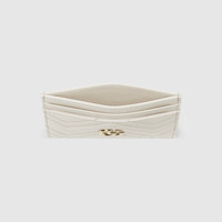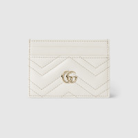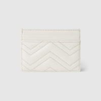 This GG Marmont card case is crafted from white matelasse chevron leather. The structured design features the signature Double G hardware in silver-tone. - White matelasse chevron leather - Gold-toned hardware - White taffeta lining - Double G - Four card slots, one open pocket - 4"W x 2.5"H - Weight: 0.14lbs approximately - Made in Italy