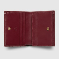 This GG Marmont foldable card case is crafted from the new Gucci Rosso Ancora red matelassé chevron leather. The signature Double G hardware in a lighter gold-toned defines this accessory, complete with five card slots. - Gucci Rosso Ancora red matelassé chevron leather - Light gold-toned hardware - Moiré lining - Double G - Five card slots - One bill compartment - One zip pocket - Interior open pocket - Snap closure - Closed: 4.5"W x 3.5"H x 1"D - Open: 4.5”W x 7”H - Made in Italy