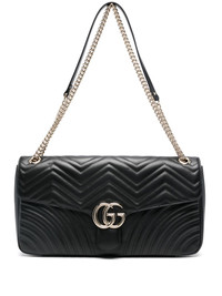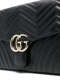 large GG Marmont shoulder bag Highlights - Black - Leather - Smooth grain - Signature marmont quilting - Signature double g logo - Foldover top with magnetic fastening - Sliding chain-link shoulder strap - Main compartment - Internal logo patch - Internal zip-fastening pocket - Satin lining Made in Italy Composition Outer: CALFSKIN 100% Lining: Leather 100% SIZE & FIT Model measurements Height 5 ft 10 in(1.77 m) Bust/Chest 33.07 in(84 cm) Hips 34.64 in(88 cm) Waist 23.22 in(59 cm) Measurement DEPTH 3.34 in(8.5 cm) HANDLE 25.98 in(66 cm) HEIGHT 8.26 in(21 cm) STRAP 43.3 in(110 cm) WIDTH 15.74 in(40 cm)