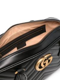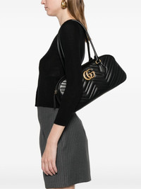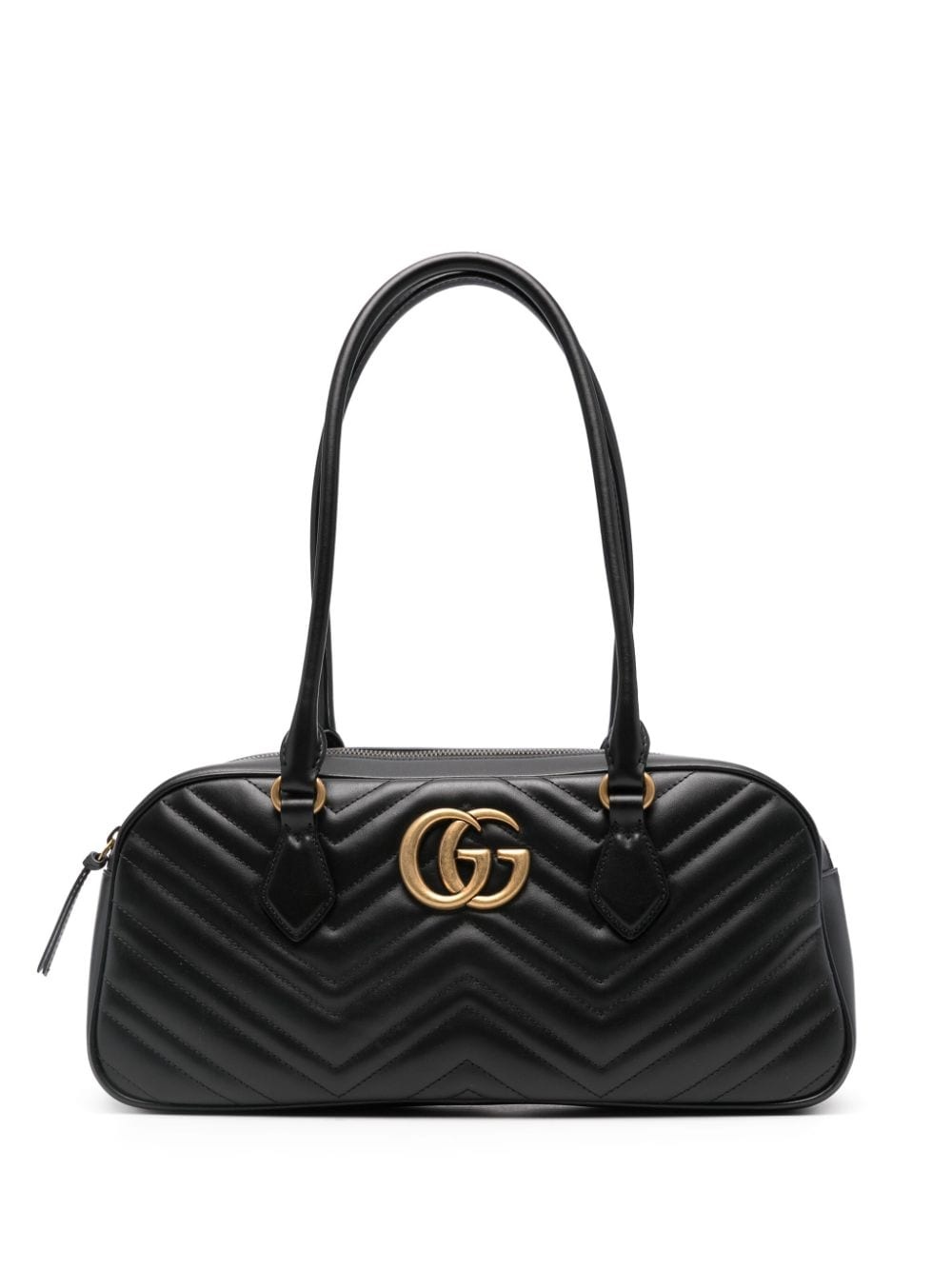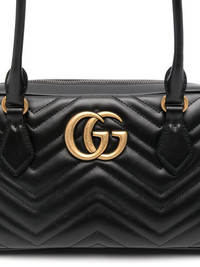 medium GG Marmont tote bag Highlights - Black - Calf leather - Smooth grain - Signature marmont quilting - Signature double g logo - Gold-tone logo plaque - Top zip fastening - Two rolled top handles - Main compartment - Internal zip-fastening pocket - Debossed internal logo - Suede lining - Gold-tone hardware - This piece comes complete with a protective dust bag. - We've partnered with good on you â an independent agency that rates how brands perform in relation to their impact on the planet, people and animals, with a multi-criteria rating simplified to a five points scale. in order to be awarded our conscious label, larger brands need to score a minimum of four out of five ('good'), while smaller brands must score at least three out of five ('it's a start'). - This item comes from a brand rated three out of five ('it's a start') by good on you at the time it was added on farfetch. please note, this is a brand-level rating and does not guarantee that this product is made with conscious materials. - Learn more about what makes a product conscious on our conscious criteria page Made in Italy Composition Outer: Calf Leather 100% SIZE & FIT Model measurements Height 5 ft 9 in(1.75 m) Bust/Chest 30.31 in(77 cm) Hips 35.43 in(90 cm) Waist 25.19 in(64 cm) Measurement DEPTH 2.75 in(7 cm) HANDLE 9.84 in(25 cm) HEIGHT 6.29 in(16 cm) WIDTH 13.97 in(35.5 cm)