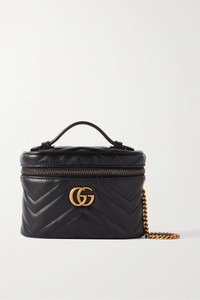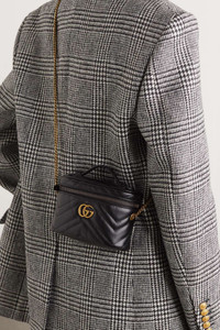 EDITORS'NOTES Gucci's mini shoulder bag is adorned with an iconic gold logo in the same antiqued finish as its long chain strap. Made from smooth leather, it's quilted in chevron panels - a signature of the 'GG Marmont' line. The suede interior is perfect for carrying small essentials, plus there's a handy card slot. SIZE & FIT This item’s measurements are: - Handle Drop: 2.5cm / 1in - Depth: 7cm / 2.8in - Max. Strap Length: 107cm / 42.1in - Height: 11cm / 4.3in - Width: 17cm / 6.7in DETAILS & CARE - Black leather (Calf) - Zip fastening along top and sides - Comes with a dust bag - Weighs approximately 1.3lbs/ 0.6kg