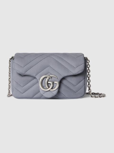 The GG Marmont, a signature collection of the House, features the Double G hardware, a faceted chain strap, and nabuck leather with a soft touch and sophisticated feel. This mini bag is complete with the archival logo, first introduced in the 1970s. - Dark brown matelasse chevron nubuck leather - Dark brown leather trim - Palladium-toned hardware - Grey cotton linen lining - Double G - Chain shoulder strap with 23.6" drop - Magnetic snap closure - Weight: 0.77lbs approximately - W6.5" x H3.7" x D1.8" - Made in Italy - Fits up to iPhone Pro, Airpods, card case, and lipstick
