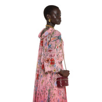 The GG Marmont, a signature collection of the House, comprises contemporary silhouettes. This vanity bag with chain highlights the archival logo, first introduced in the 1970s. - Gucci Rosso Ancora red matelasse chevron leather - Light gold-toned hardware - Gucci Rosso Ancora red taffeta lining - Double G - Chain shoulder strap with 19.6" drop - Zip closure - 5.9"W x 3.1"H x 3.3"D - Weight: 0.5lb, approximately - Fits up to iPhone Pro Max/Plus, Airpods, card case, and lipstick