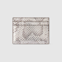 The GG Marmont collection introduces metallic styles for the gifting season. Shiny leather transitions from day to evening, complemented by the Double G hardware, such as this laminated-effect python card case. - Metallic light silver laminated-effect python leather - Silver-toned hardware - Grey taffeta lining - Double G - Four card slots, one open compartment - Weight: 2.3oz approximately - 4"W x 3"H - Made in Italy